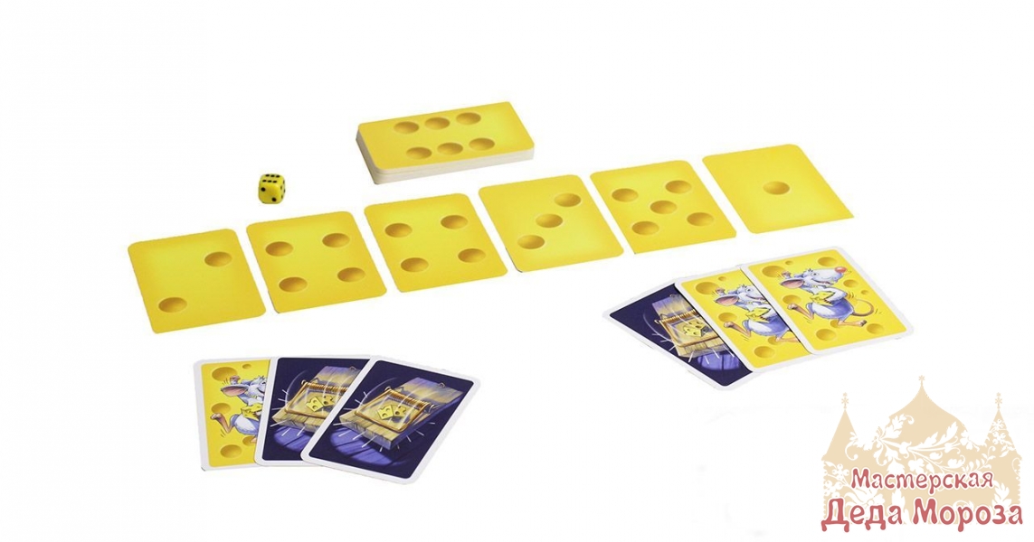 Кот из дома — мыши в пляс. Они вылезли из норок и мечтают полакомиться сыром. Чтобы им помочь, сыграйте в непредсказуемую и увлекательную игру с картами и кубиком. Развивайте логическое мышление и память. Только самые смышлёные добудут много вкусного сыра и не попадутся в мышеловки. «День сырка» — отличное развлечение для всей семьи и, конечно же, ценителей сыра.