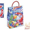 В новогодний подарок входит: новогодний сувенир "Дед Мороз"-елочная игрушка, кондитерский набор и упаковка.